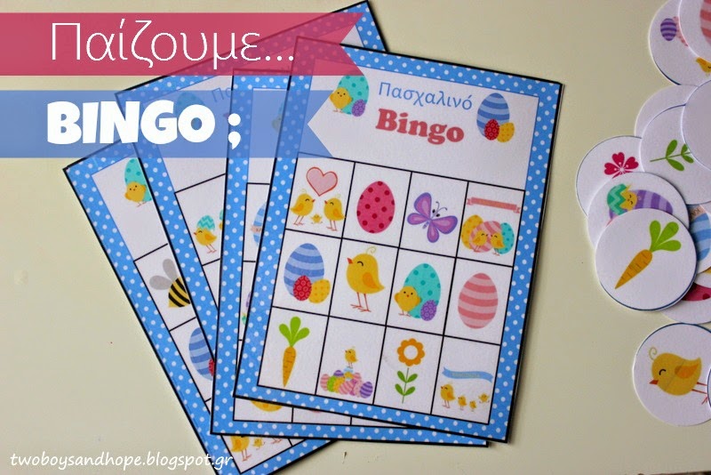 Οπότε του έφτιαξα ένα Πασχαλινό bingo... για να παίζουμε στις διακοπές... Εννοείται ότι το εγκαινιάσαμε ήδη..